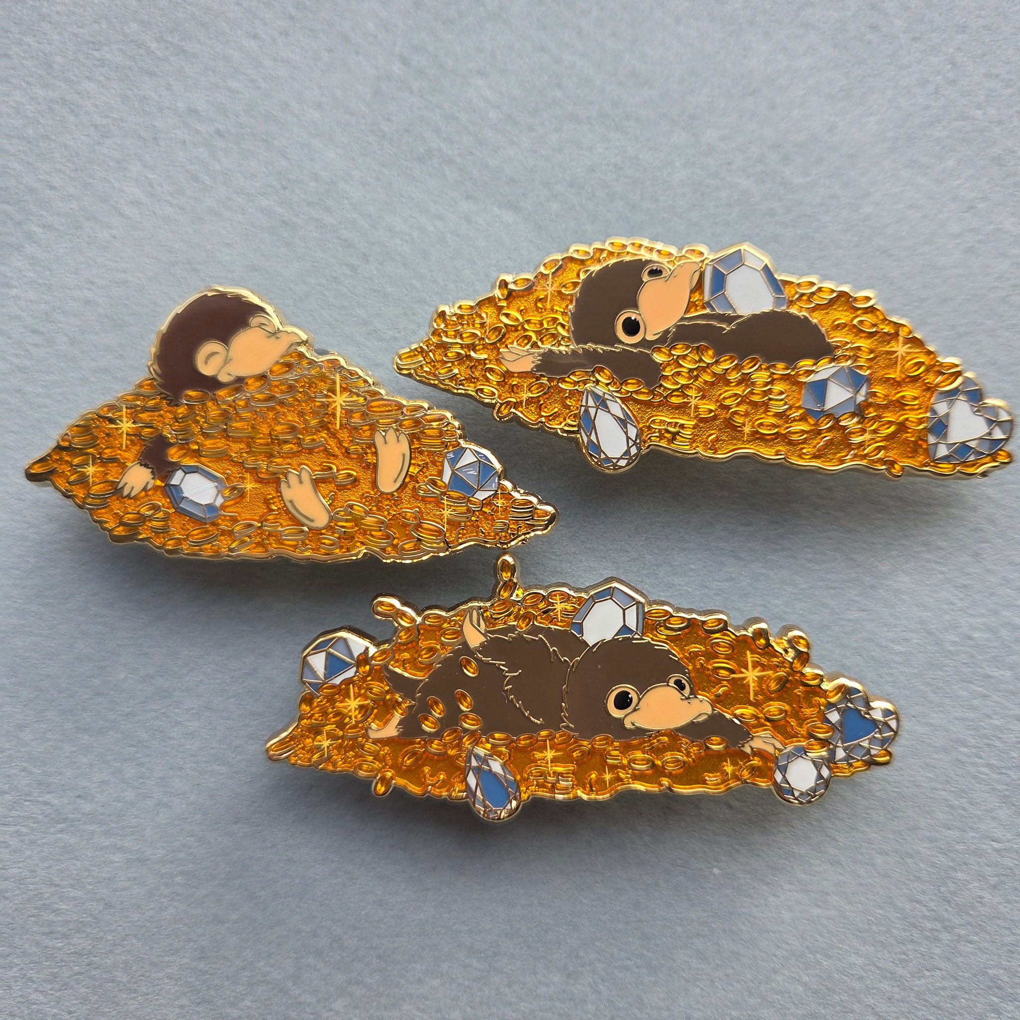 All our pins are designed by us or in collaboration with others. You can only buy them here or in our Etsy shop, unless it’s a collab. Our pins have our logo on the back and are all made of hard enamel.