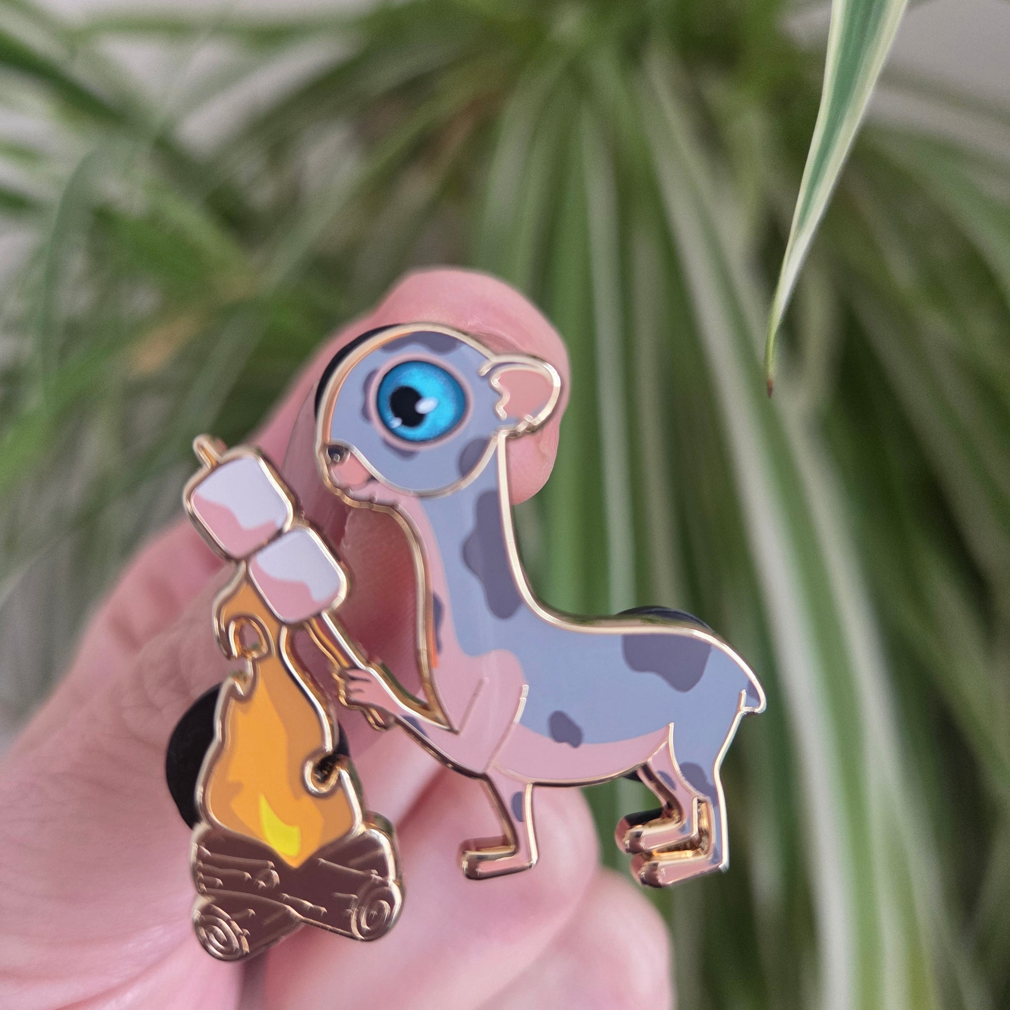 All our pins are designed by us or in collaboration with others. You can only buy them here or in our Etsy shop, unless it’s a collab. Our pins have our logo on the back and are all made of hard enamel.
